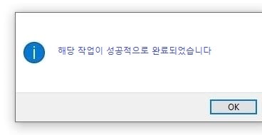 모니터 화면에 ‘작업이 성공적으로 완료되었습니다’라는 메시지가 나타납니다.